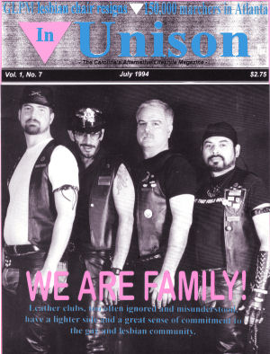 July 1994. In Unison, a publication for �The Carolina�s Alternative Lifestyle� talks to members of the L/L Brigade in an article titled �More Than A Fetish�. Members Mark S, Scott L, Don A, And Regi- are featured on the cover (Vol. 1, No. 7), above the caption �WE ARE FAMILY�. The article focuses on the misunderstanding the community has about those involved in BDSM activities. The same edition also has Scott and Regi- with an article of the long lost fan-dancing craze that was a part of the disco side of the leather club scene. September 16-17, 1994. Brigade�s first run was �Boot Camp I�. It was only a one-night event, and had 40-50 folks attend. The host bar was �The Edge� on Main St, Columbia. The host motel was �The Heart of Columbia�, right across from the State Capital building. That weekend, Brigade officers, also ceremoniously, inducted, by ritual, the �Trident Knights�, of Charleston, SC (founded August 29, 1993), initial officers into their office. (They wanted to be inducted by a currently active group of leather folk.) It was a very private ceremony, that �The Edge� as kind enough to let us hold on Sunday morning, in their bar. http://www.tridentknights.com/Home.html Autumn 1994 - Spring 1995. A Midlands Tech Columbia professor contacts the GLPM Community Center requesting varied types of representatives from the G/L/B/T community to sit on a panel to address several sociology classes. Master Regi-, being a Gay Leather person, (in full leather �Club Colors� attire with accessories), along with a Bisexual mother, a Lesbian, a Drag Queen, and a Gay father, just to name a few types were among those on the 8 different panels, taking place at Midlands Tech. The questions ranged from religious to political, to personal and lifestyle, including BDSM aspects. It was a positive, enlightening, well accepted, and very educational event not just for the students, but for panelists as well. |